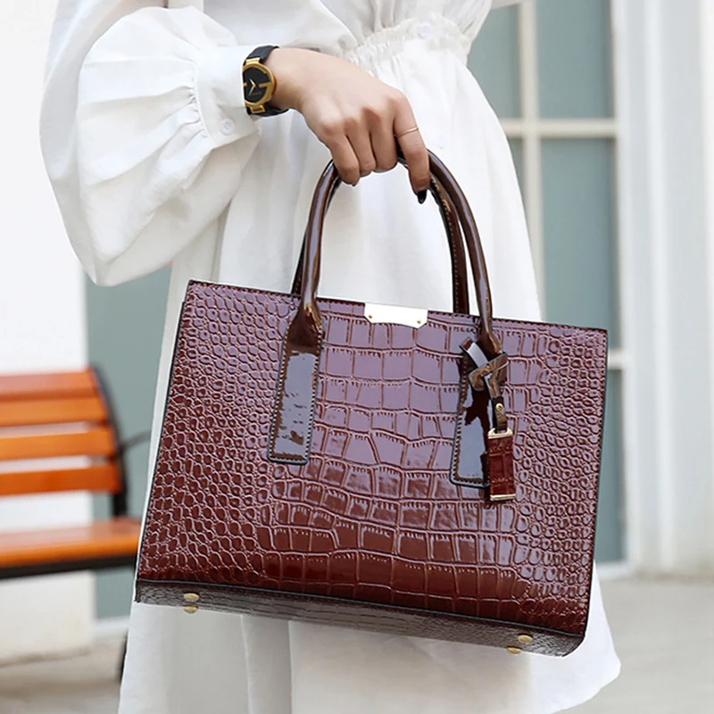 Patent Leather Crocodile Crossbody Bag – Elegant Women’s Shoulder Handbag